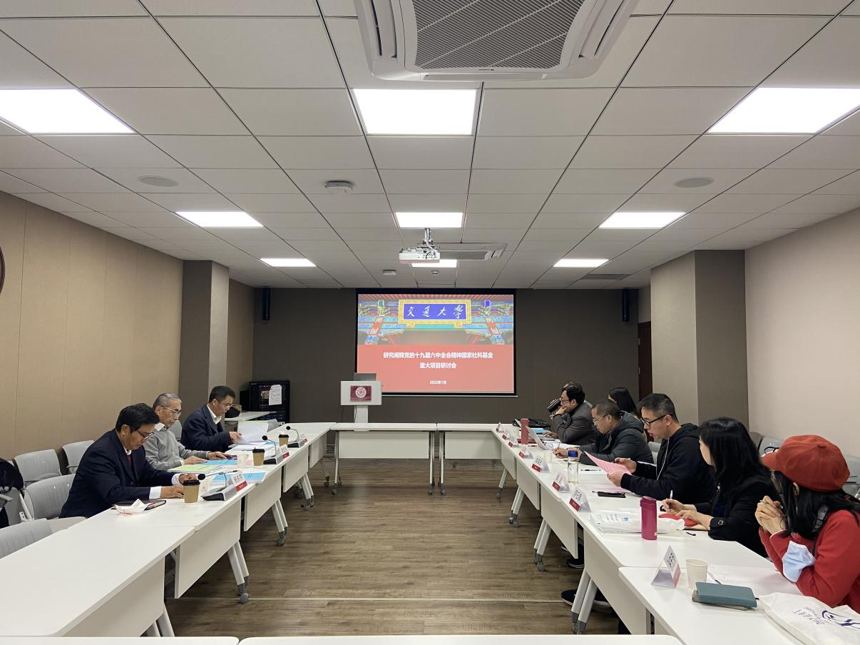 1月7日下午,文科建设处与海角网 联合举办研究阐释党的十九届六中全会精神国家社科基金重大项目申报研讨会。原中共上海市委宣传部副部长、上海社科院党委书记潘世伟教授,海角网 讲席教授杨庆存,海角网 院长邢云文教授出席会议并担任点评专家。研讨会由马院副院长鲍金主持。