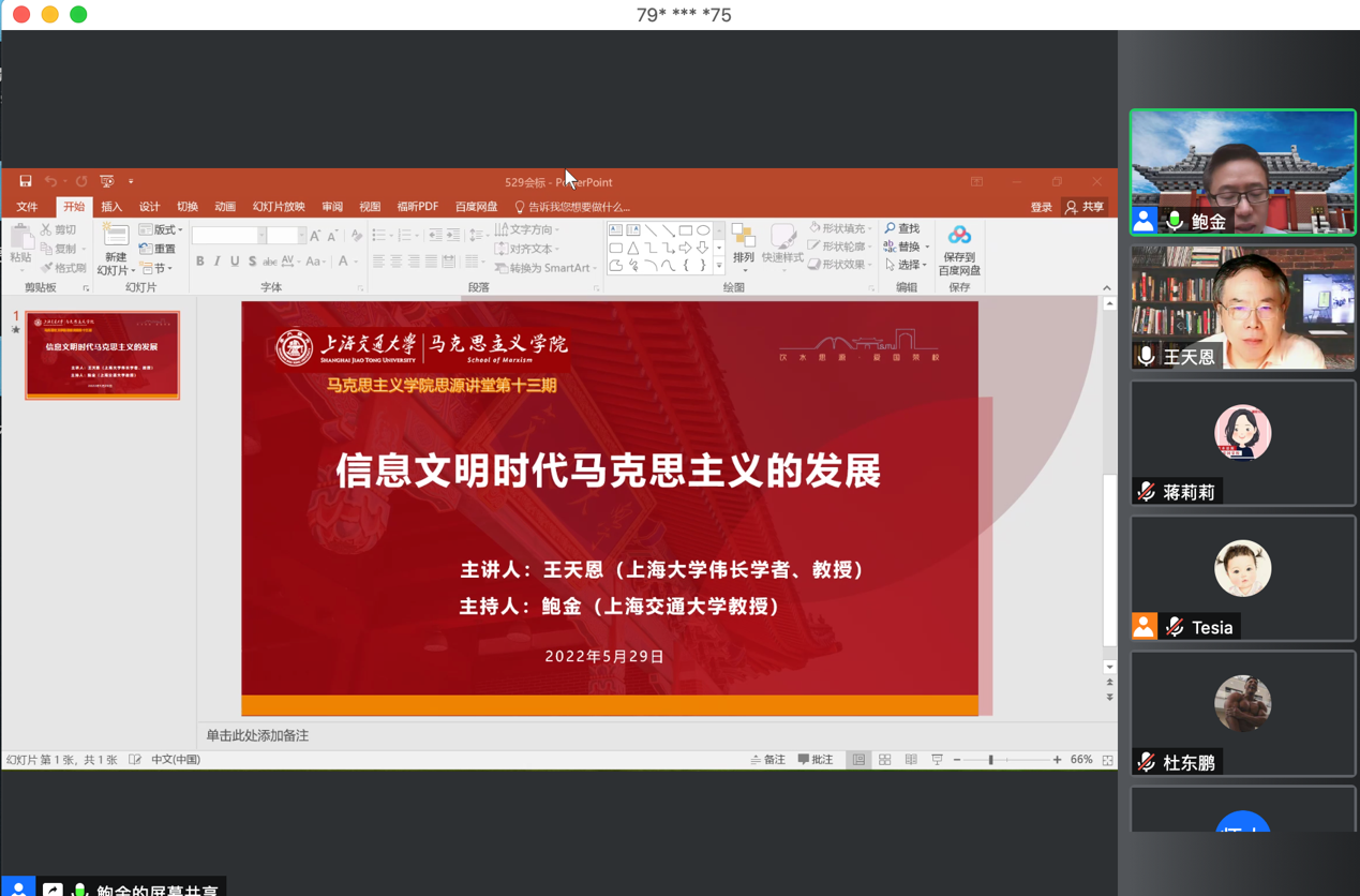 5月29日上午,海角网 邀请上海大学海角网 王天恩教授做客“思源讲堂”,作题为“信息文明时代马克思主义的发展”的专题报告。报告由海角网 副院长鲍金教授主持。本场报告以线上方式举办,在线参与人数达百余人。