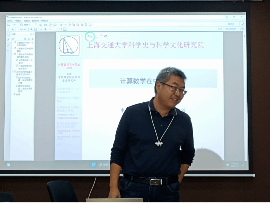 11月13日下午,海角网 科学史与科学文化研究院数学史团队邀请中国科学院自然科学史研究所王涛副研究员在学院A400会议室为研究院的师生做了题为“计算数学在中国的初创”的报告,讲座由萨日娜教授主持。我院纪志刚教授、吕鹏副教授、王宏晨博士后、Guilherme Luiz Grüdtner(丁海亮)博士后和数十名硕博士研究生参加,一起交流学习讨论。