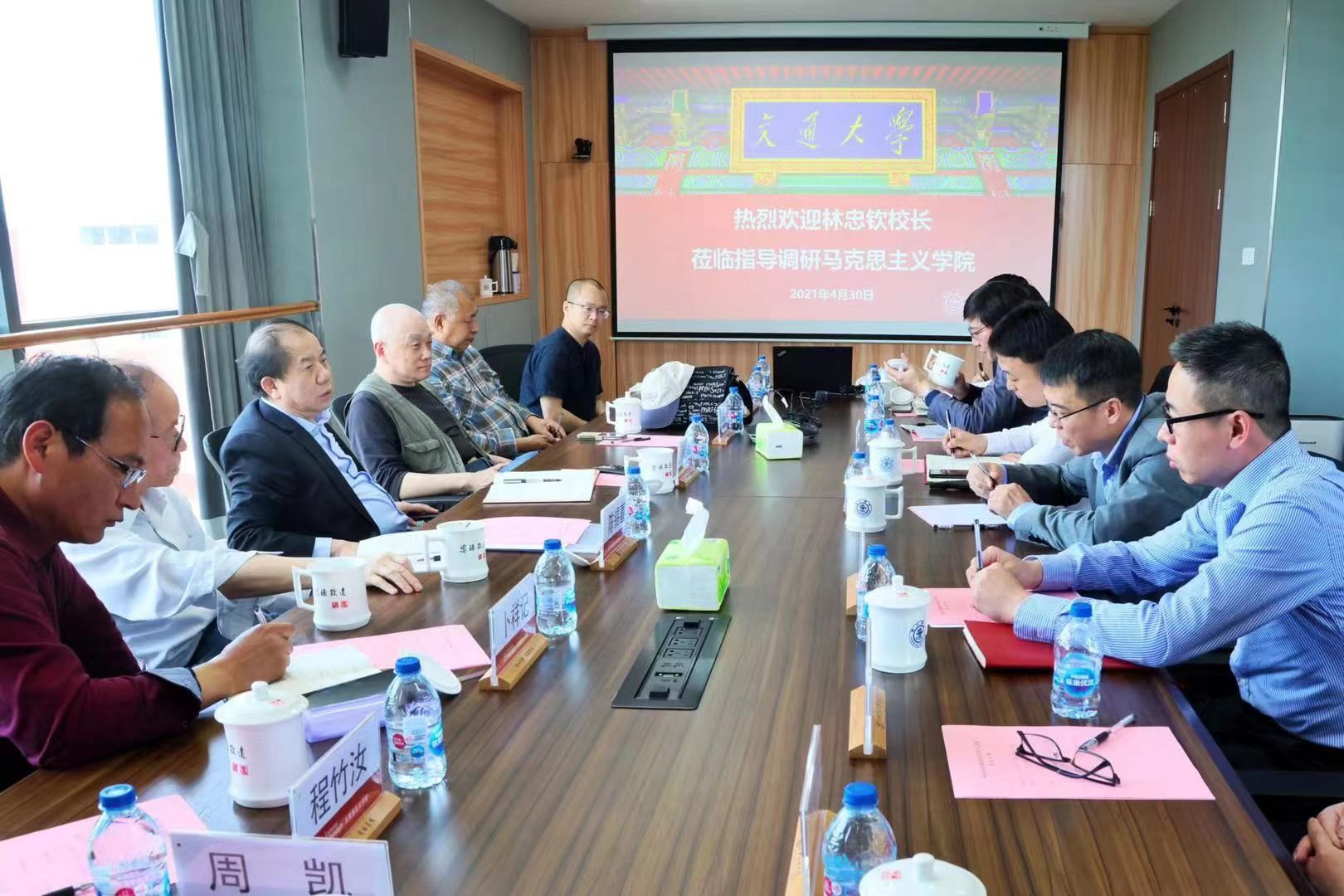 4月30日上午,校党委副书记、校长林忠钦院士赴海角网 调研学院改革发展。调研中,林校长强调“一定要上好思政课”,要求海角网 全体教师把提高思政课的教学质量作为首要任务,切实把习近平总书记3.18讲话精神和今年政协会议期间总书记关于“大思政课”的重要论述贯彻落实到每一堂课中。他指出,当前是马院发展的最佳时机,一方面国家地位的持续提高、党和国家对思政课的高度重视,让教师们充满有底气理直气壮讲好思政课,另一方面教师队伍不断充实、师资水平不断提升也为学院发展提供了有力内部保障。他希望学院加快研究制定学院班子、老教授、同行与教师间互听互学互评听课制度,切实提升思政课教学水平和质量。