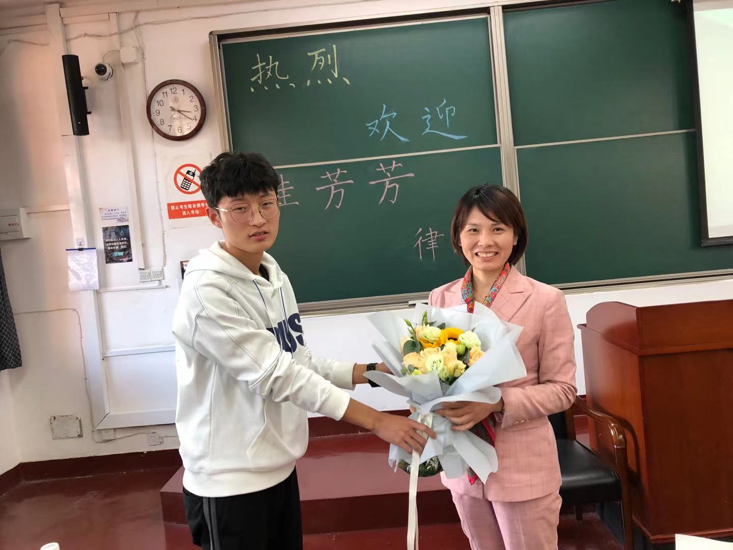 桂律师以案说法,语言生动,形式活跃,激起了同学们对法律知识的浓厚兴趣,也对恋爱有了进一步的认识和思考。讲座的尾声,周国华老师为本次讲座活动进行了总结,桂律师也向四位同学赠送了她的法律专著,一位男生代表为桂律师送上鲜花,藉此表达同学们对桂律师精彩讲座的衷心感谢。