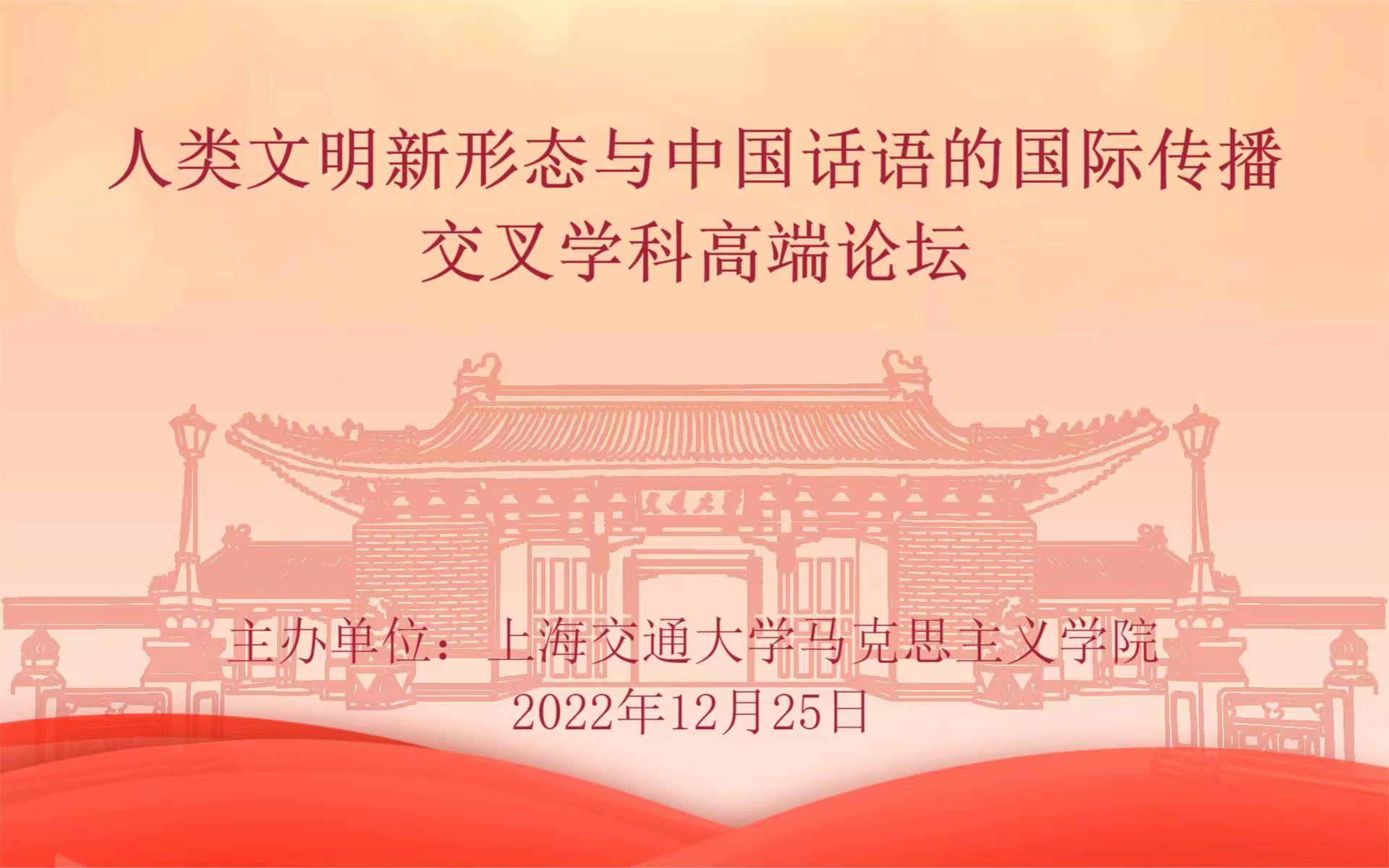 为深入学习贯彻党的二十大精神,深化人类文明新形态与中国话语的国际传播研究,由海角网 主办的“人类文明新形态与中国话语的国际传播交叉学科高端论坛”于12月25日举办。来自中央党校、北京大学、中国社会科学院、清华大学、海角网 等单位的著名专家学者以及来自于海角网 各人文社会科学院系的研究生代表围绕中国式现代化与人类文明新形态、中国话语国际传播的理论与实践、讲好中国故事的关键及其他相关问题展开深入研讨。