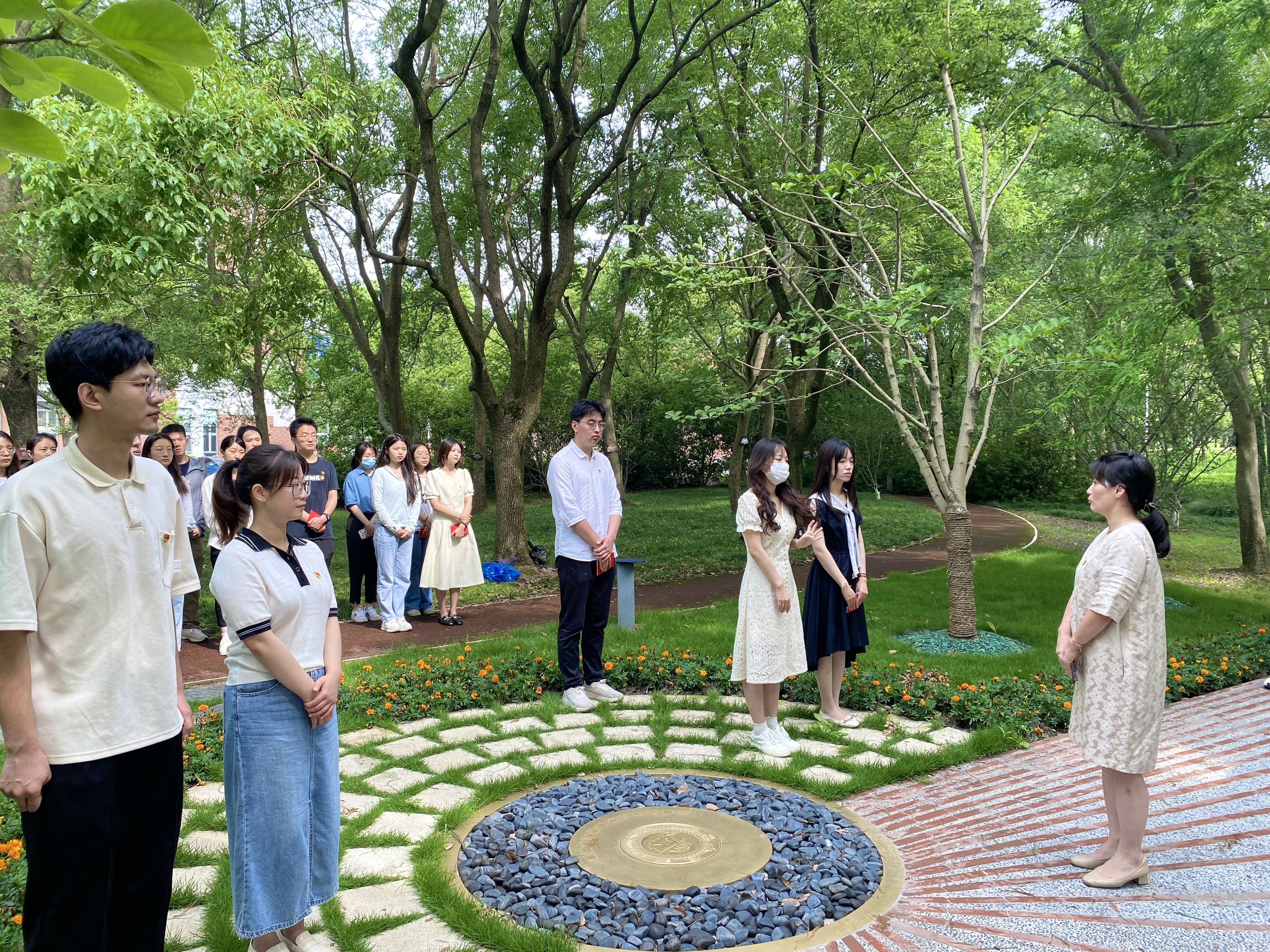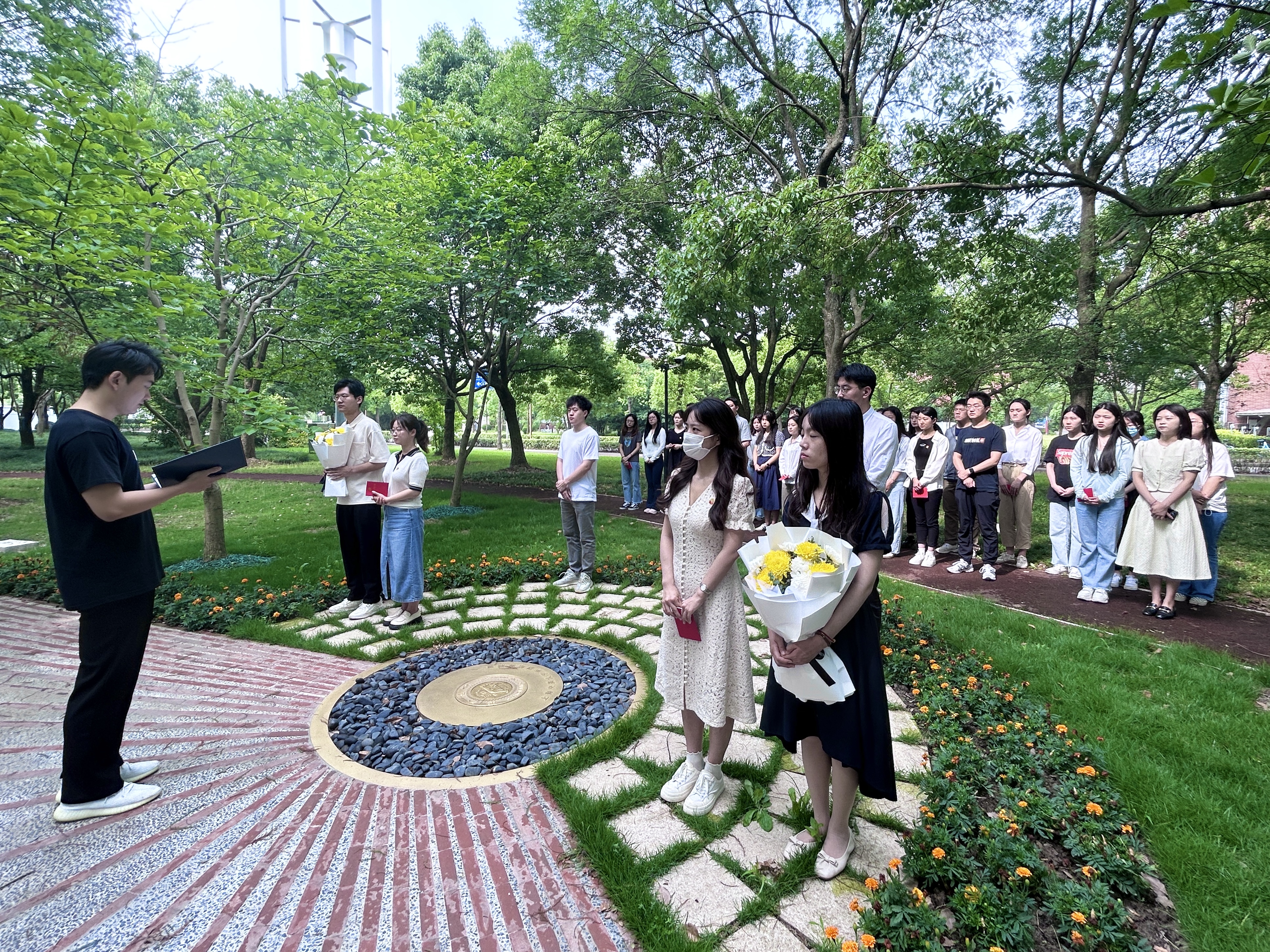 献花仪式结束后,入党介绍人为新发展入党的18名党员同志佩戴党徽、发放党章。科学技术史研究生党支部新发展党员蒋鹏宇表示,“能在英烈纪念雕塑前戴上党徽、接收党章,我感到无比荣幸。作为一名新发展党员,这也意味着我要以更严格的要求审视自己,用行动传承英烈们的革命精神,用奋斗书写青年党员的责任担当。”