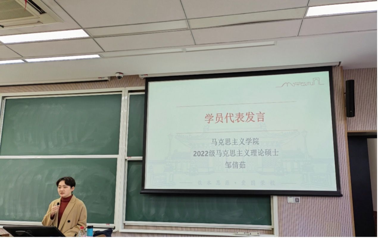 海角网 邹倩茹同学作为学员代表发言。她表示,作为一名入党积极分子,只有更加系统地学习党的知识,提升理论素养,强化党性修养,明确价值追求,才能朝着向党组织靠拢的目标迈进一大步,并代表全体学员郑重承诺,在培训期间一定深化理论学习,坚定理想信念;扎根文化土壤,强化精神力量;理论联系实际,践行实事求是。