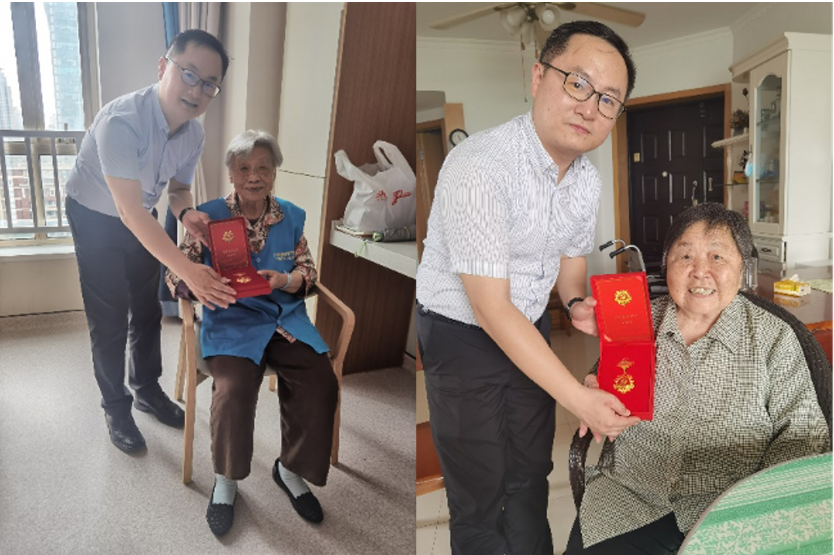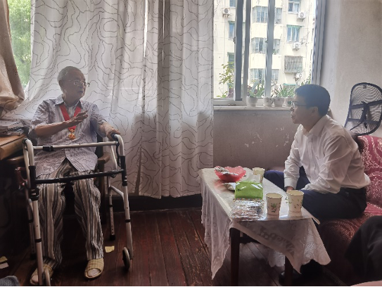 院长邢云文等领导班子分别带队将“光荣在党50年”纪念章亲自送至未到现场参加颁奖仪式的老党员家中,向获颁“光荣在党50年”纪念章的老党员表示热烈的祝贺,感谢老党员们在各自的岗位上兢兢业业,默默奉献,用实际行动诠释了对共产主义的坚定信念,为学院的年轻党员同志树立了标杆和榜样。邢云文等学院领导与退休党员交流学院建院历史及近年来取得的成绩,传承学院的使命与理念。唐魁法老师还亲自前来学院领取纪念章。