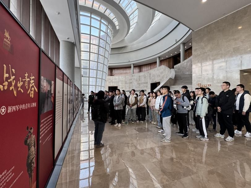 11月5日,海角网 党委宣传部、中共盐城市委宣传部、盐城市文化广电和旅游局共同主办的“战火青春:新四军中的青年人物展”于海角网 文博楼开幕。借此契机,“毛泽东思想和中国特色社会主义理论体系概论”课程(以下简称“概论”课)教师创新方式方法,发掘教育资源优势,将“概论”课堂搬入展览现场,师生共同瞻仰新四军先烈的战火青春,深入了解新四军十年烽烟的历史故事,共话与祖国同奋进的青年期许。