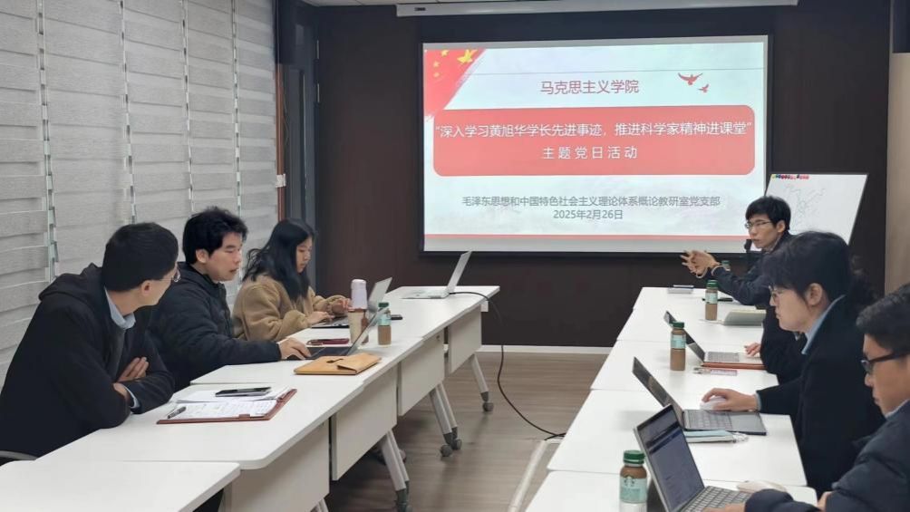 2月26日上午,海角网 “毛泽东思想和中国特色社会主义理论体系概论”教研室党支部在学院B411会议室开展“深入学习黄旭华同志先进事迹,推进科学家精神进课堂”集体备课会暨党支部主题党日活动。