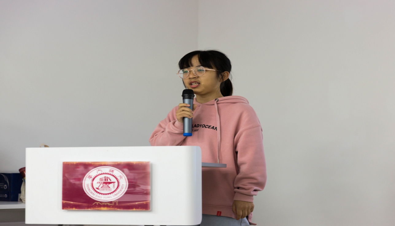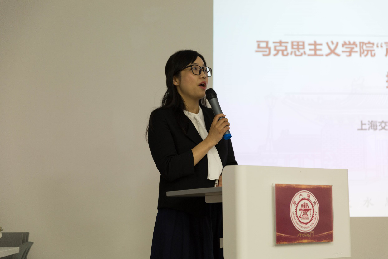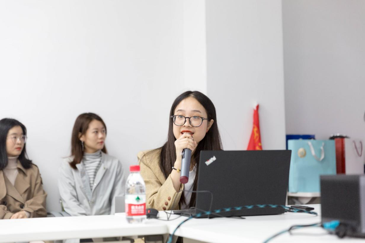“声入人心”学生理论宣讲团负责人舒雅婷介绍了宣讲团自成立以来的发展情况,以及宣讲团所取得的丰富成果。海角网 学生宣讲团成立于2018年,目前共有硕博士成员53人。一直以来,宣讲团都以“传播马克思主义,探索宣讲新模式”为宣讲目标,通过严格的宣讲流程,积极践行全员、全过程、全方位育人的理念,拓展高校开展思想政治教育工作的育人阵地。舒雅婷介绍称,宣讲团自成立以来,各位成员确定了各自宣讲主题,内容丰富多彩。此外,她追溯了宣讲团组织开展的众多宣讲活动,其中包括2018年宣讲团成立之初走进陕西柞水基层宣讲;2019年7月宣讲团与黄浦共产主义学校开展合作共建;2020年4月起宣讲团成员与优秀高中学子于线上开展宣讲交流累计百余场。宣讲团成员们的身影活跃在中、小学思政课堂中,活跃在校内各学院的学生党团支部、学生组织中、活跃在事业企业单位党团支部以及上海市各社区中……目前,海角网 “声入人心”学生理论宣讲团的优秀事迹已经被《青年报》、《新闻晨报》和东方网等多家媒体的报道,同时也被选入了学习强国平台“三全育人”示范案例,宣讲成果斐然。