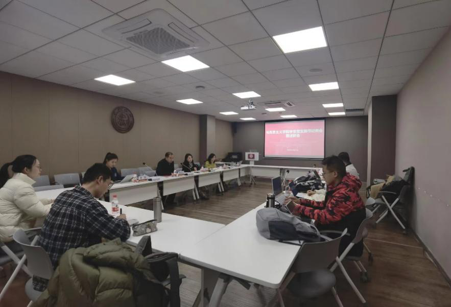 为全面总结2022年学生党支部党建工作,进一步明确2023年工作思路,提高马院学生党支部工作的品牌化、创新化、务实化、多样化,2月22日下午,海角网 组织召开2022年学生党支部书记述职评议会。院党委书记董玉山,党委副书记任祝景,学工办主任、学生党建指导教师杨波怡,组织干事袁玲以及学生党支部书记等十余人参会,会议由杨波怡主持。